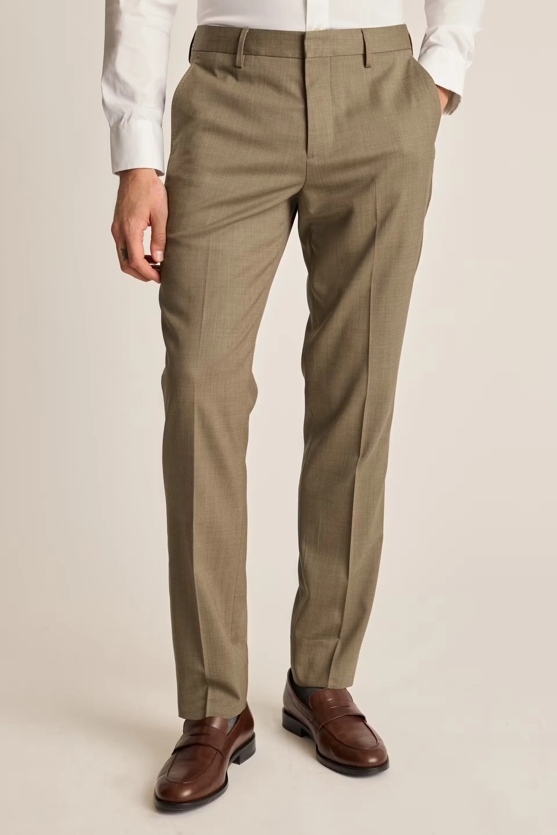 Formal Fit Men’s Suit Pant Wool Khaki Slim and Comfortable Flat High Quality Wool Dress Pant for Men Suit