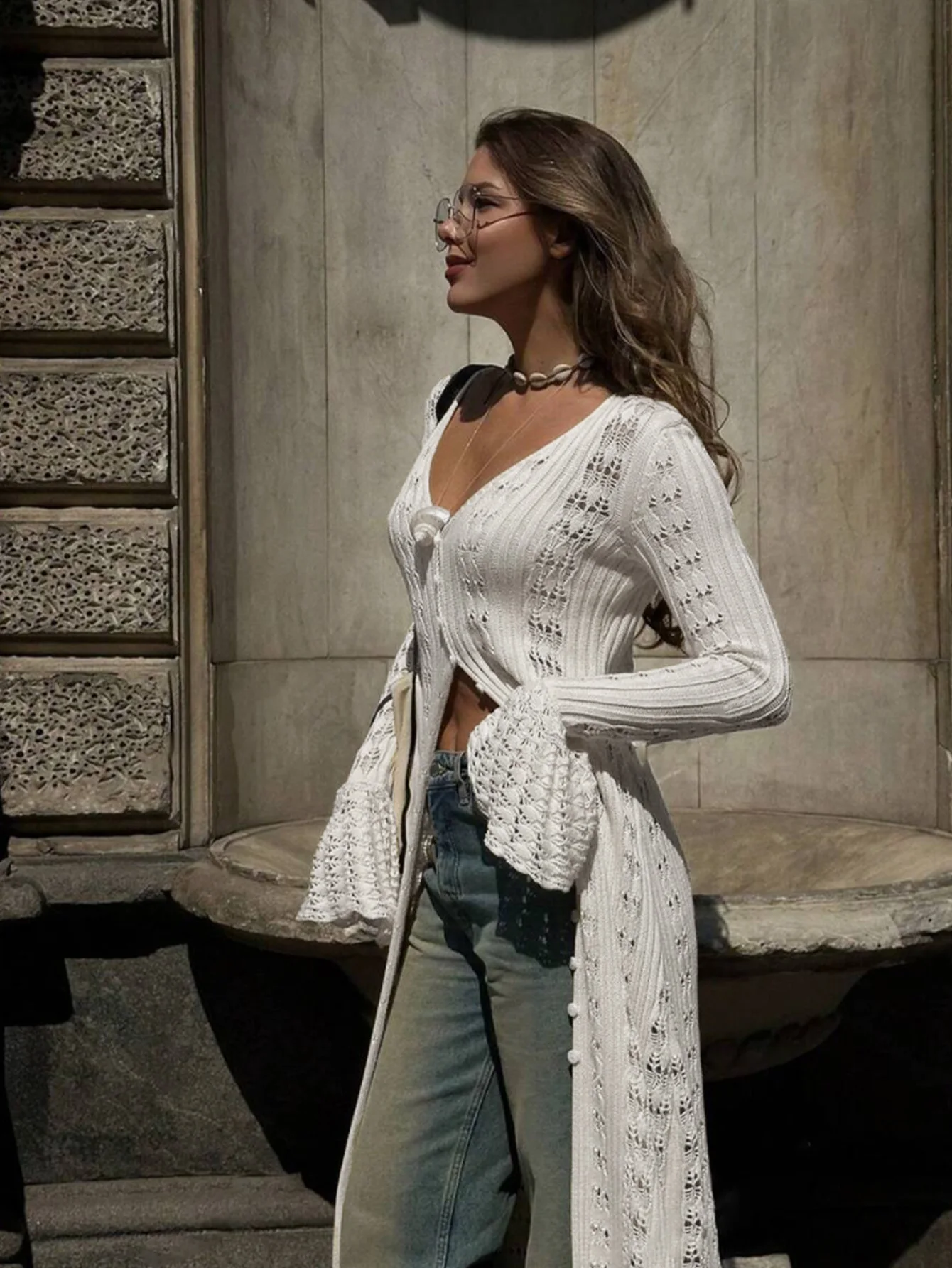 Anti-Pilling Anti-Wrinkle Women’s Knit V Neck Long Cardigan Breathable and Print-Design for Autumn Season Girls’ Sweater