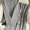 Elegant Autumn Knit Set: Single-breasted Round Neck Long Sleeve Top Solid Color Slim Skirt. 128 Chars