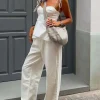 Women’s Fashion and Elegant White Edikted Top Stylish Peplum Corset with Spaghetti Straps Top
