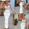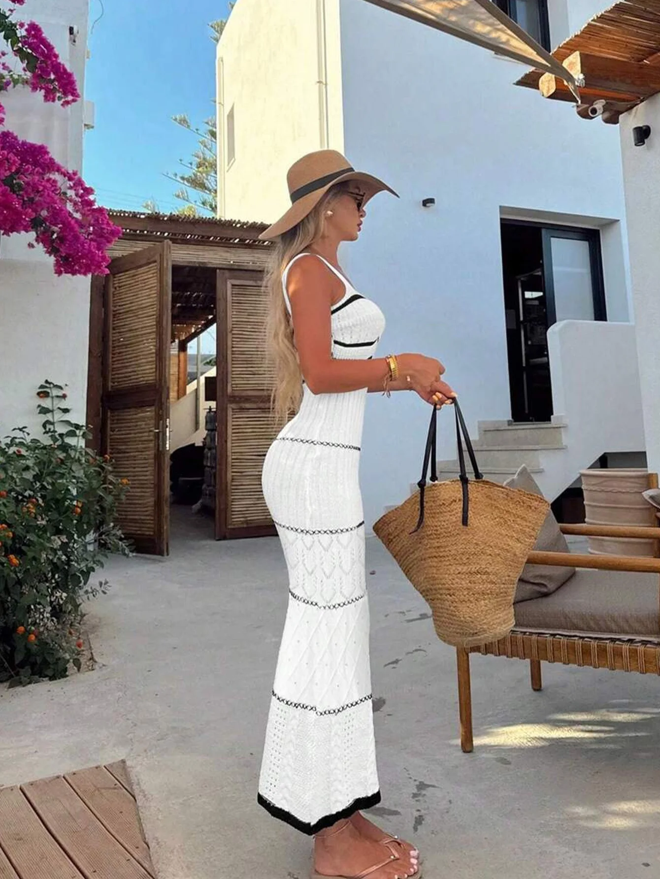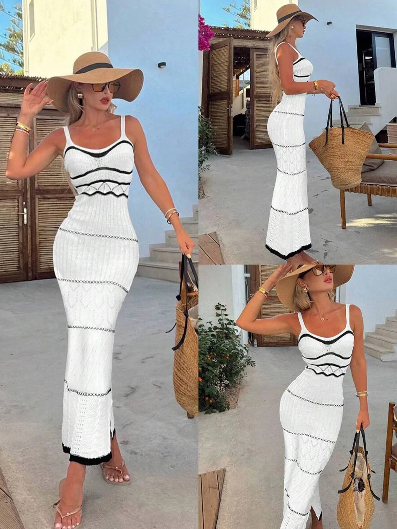 New Women’s Summer Color Clashing Bohemian Slip Dress Hollow Out Knit Wrap Dress