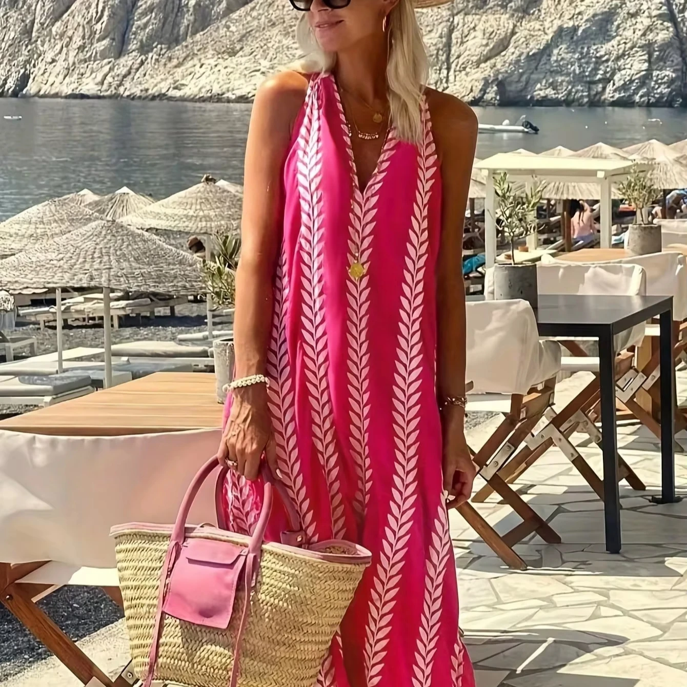Spring Summer Women’s Simple Casual Holiday Style Dress Geometric Print Sleeveless Women’s Wedding Midi Dresses